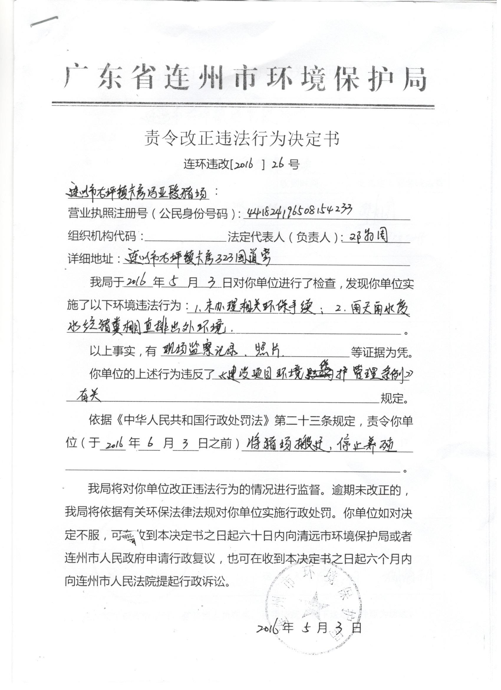 連環(huán)違改【2016】26號(hào)