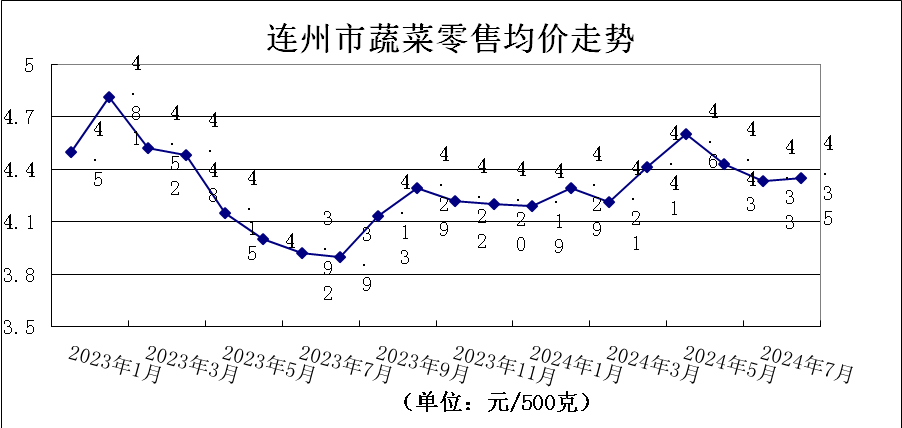 8月份,我市蔬菜價(jià)格微升,農(nóng)貿(mào)市場(chǎng)監(jiān)測(cè)的30種主要蔬菜零售價(jià)格“13升2平15降”,蔬菜類平均零售價(jià)格為4.35元/500克,環(huán)比升0.46%。其中,葉菜類零售價(jià)格為4.40元/500克,環(huán)比升2.33%,花菜類零售價(jià)格為3.73元/500克,環(huán)比降3.37%,瓜菜類零售價(jià)格為4.21元/500克,環(huán)比降1.17%,根莖類零售價(jià)格為4.66元/500克,環(huán)比降0.21%。