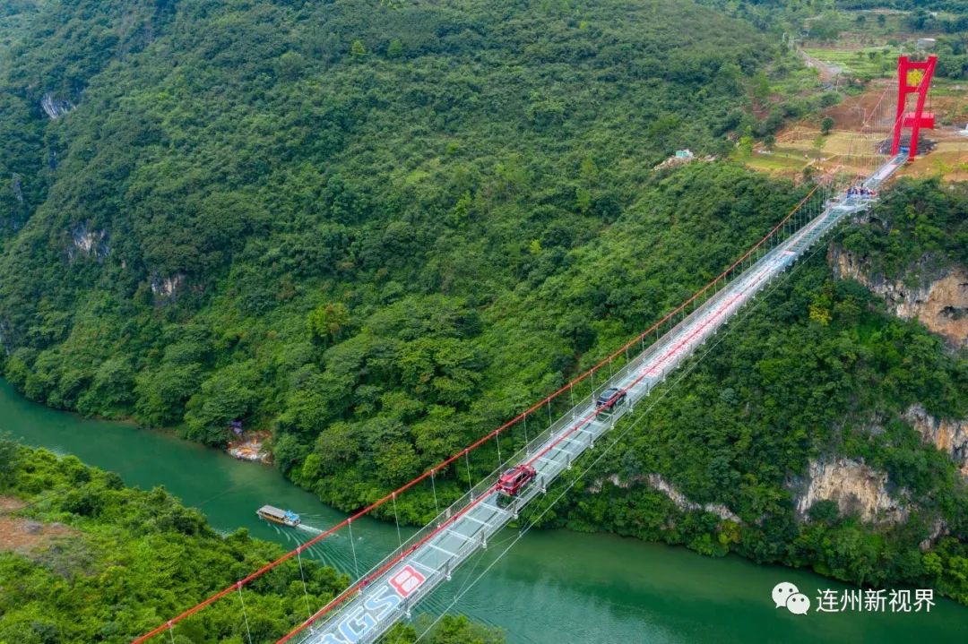 擎天玻璃橋坐落于湟川三峽——龍?zhí)抖燃賲^(qū),建在秦漢古道水路上,橫跨湟川三峽陡崖峭壁,盡覽粵北最大瀑布群,憑借別出心裁的結(jié)構(gòu)和超凡脫俗的外觀,已成為連州市高速創(chuàng)造“歷史文化之旅、自然景觀之旅、國際通道之旅”的標(biāo)志性建筑,是連州旅游的新名片。