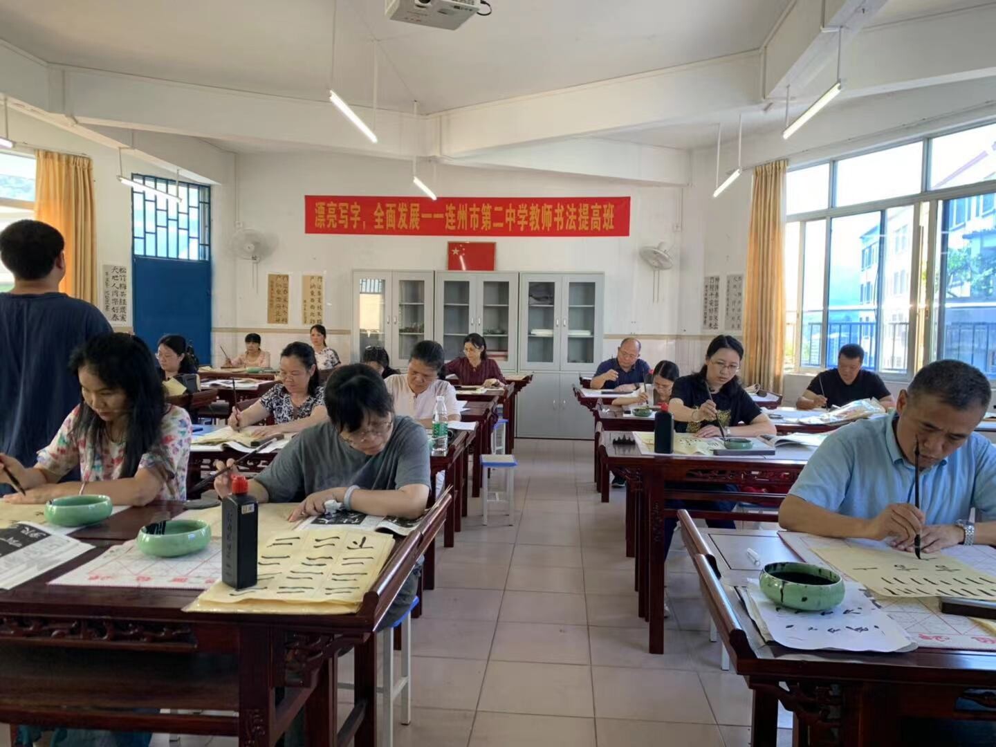 為提高我校教師的書法書寫技能和書法藝術(shù)的欣賞水平,于2021年5月26日上午9時,連州市第二中學(xué)教師書法提高班在藝術(shù)樓401書法教室舉行了開班儀式。書法小組組長李科明校長就本次學(xué)習(xí)的目的和意義作了詳細(xì)說明并對以后的學(xué)習(xí)提出要求。