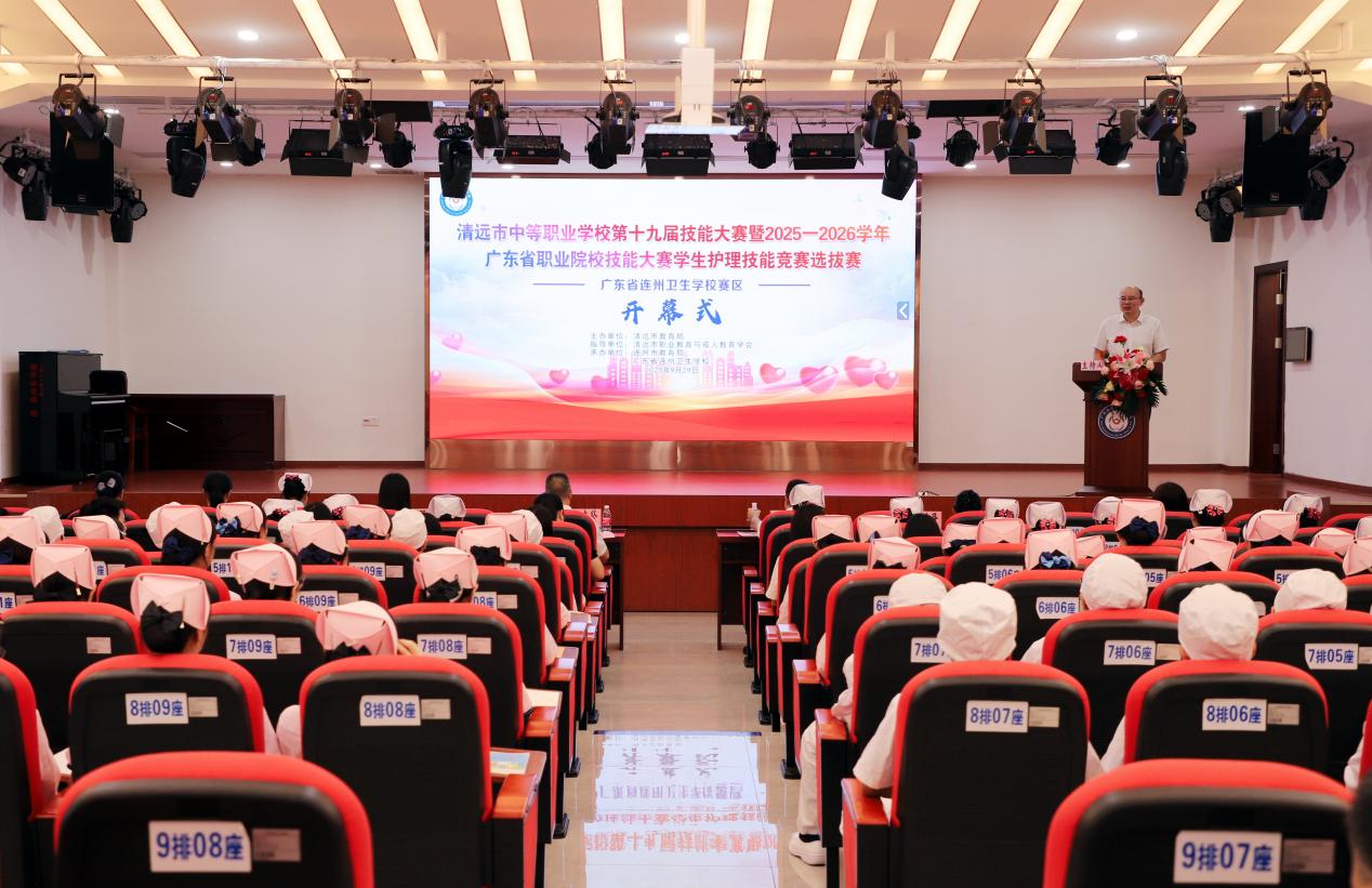 2025年9月28日-29日,清遠(yuǎn)市中等職業(yè)學(xué)校第十九屆技能大賽暨廣東省職業(yè)院校技能大賽護(hù)理項(xiàng)目選拔賽在廣東省連州衛(wèi)生學(xué)校順利舉行。29日上午9:30在廣東省連州衛(wèi)生學(xué)校學(xué)術(shù)報(bào)告廳隆重舉行了開幕式。連州市教育局黨組成員、副局長張志堅(jiān)、廣東省連州衛(wèi)生學(xué)校的有關(guān)領(lǐng)導(dǎo)出席了開幕式。參加開幕式的還有本次技能競(jìng)賽的裁判、參賽選手和指導(dǎo)老師以及廣東省連州衛(wèi)生學(xué)校的部分師生代表等。開幕式由廣東省連州衛(wèi)生學(xué)校陳冬冬副校長主持。