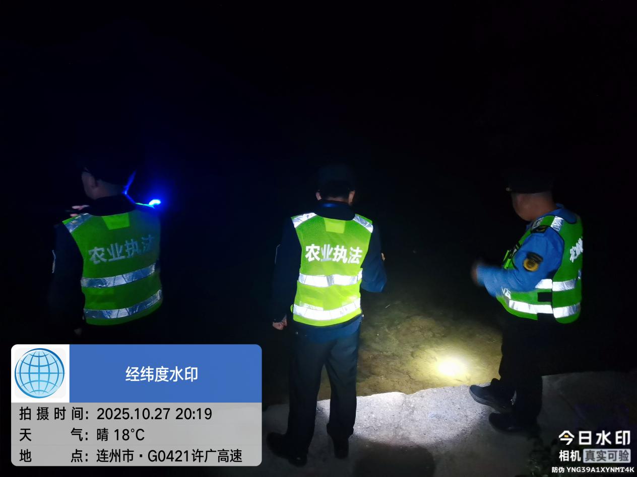 為切實(shí)保護(hù)水域生態(tài)環(huán)境和漁業(yè)資源,維護(hù)正常漁業(yè)生產(chǎn)秩序,嚴(yán)厲打擊“電毒炸”魚和非法捕撈違法犯罪行為,保護(hù)我市漁業(yè)資源和水生生態(tài)環(huán)境。2025年10月27日晚上19點(diǎn)至24點(diǎn),連州市農(nóng)業(yè)農(nóng)村局莫小堅(jiān)副局長(zhǎng)帶隊(duì),對(duì)連州市星子河新陂洞河段和星子河麻步河段開展岸線巡查,通過"車和人陸上巡,無人機(jī)水上巡"相結(jié)合的方式開展?jié)O政執(zhí)法專項(xiàng)巡查行動(dòng),在強(qiáng)化執(zhí)法威懾和法制宣傳的基礎(chǔ)上,讓非法捕撈人員和船只無處遁形。經(jīng)巡查,發(fā)現(xiàn)疑似非法電魚作業(yè)人員1名,嫌疑人驅(qū)車逃逸。
